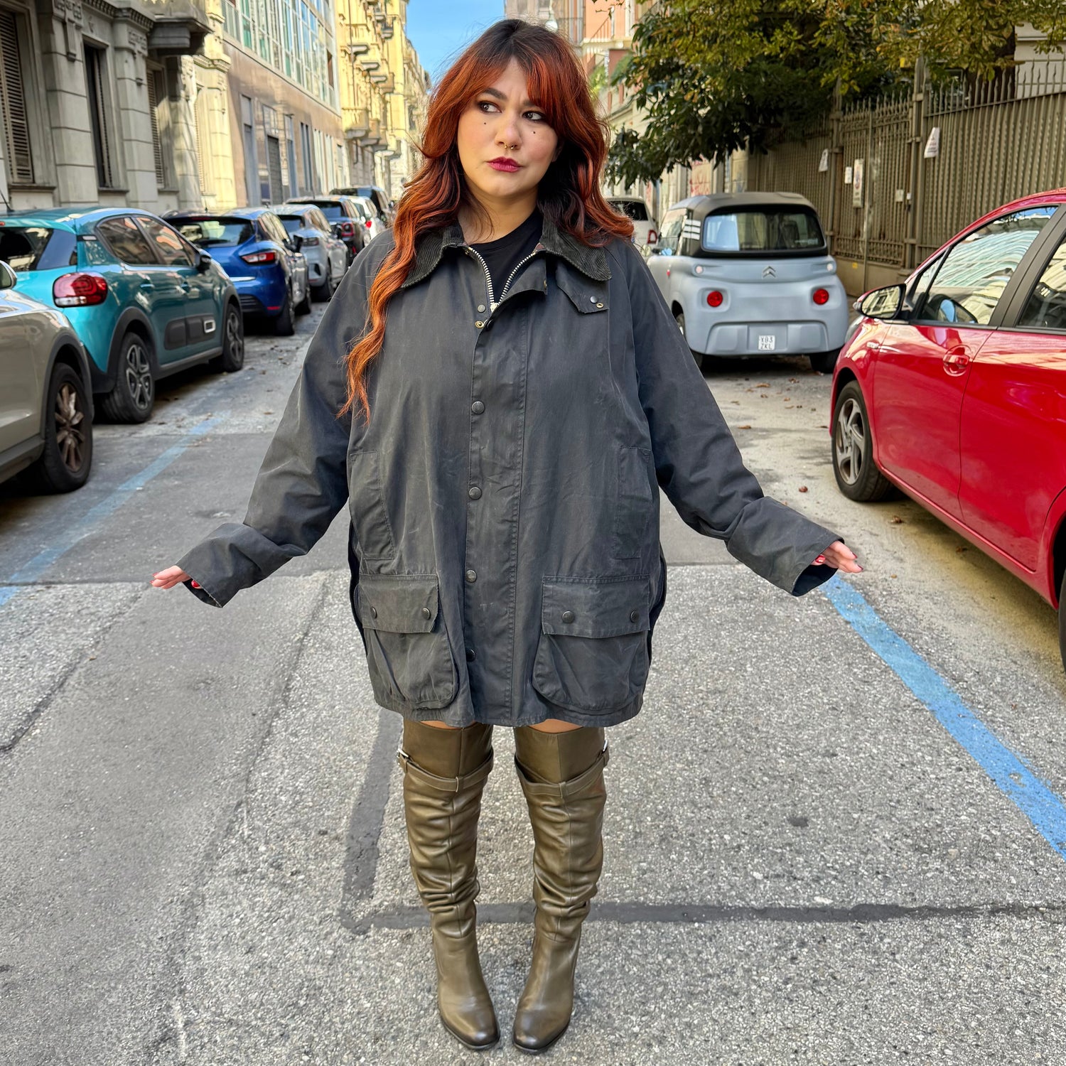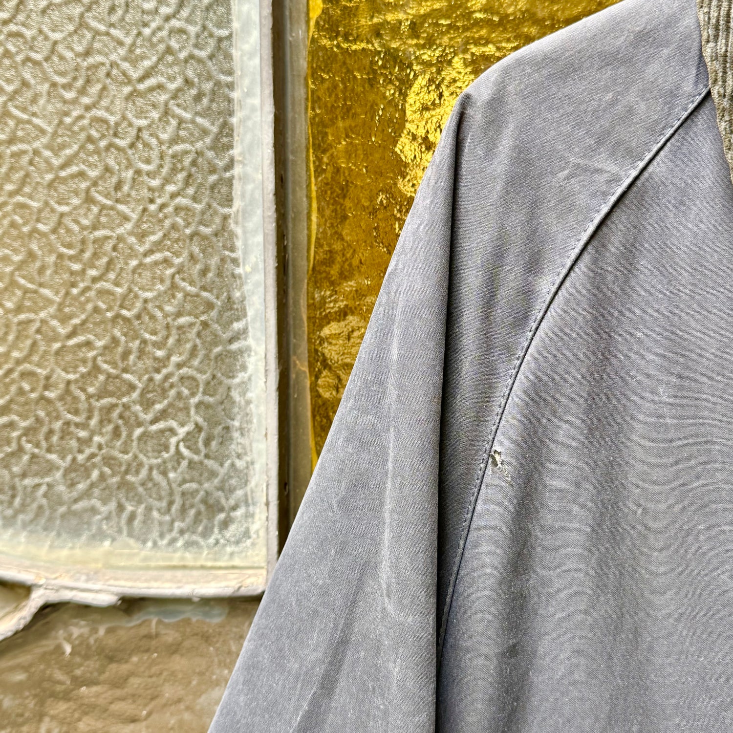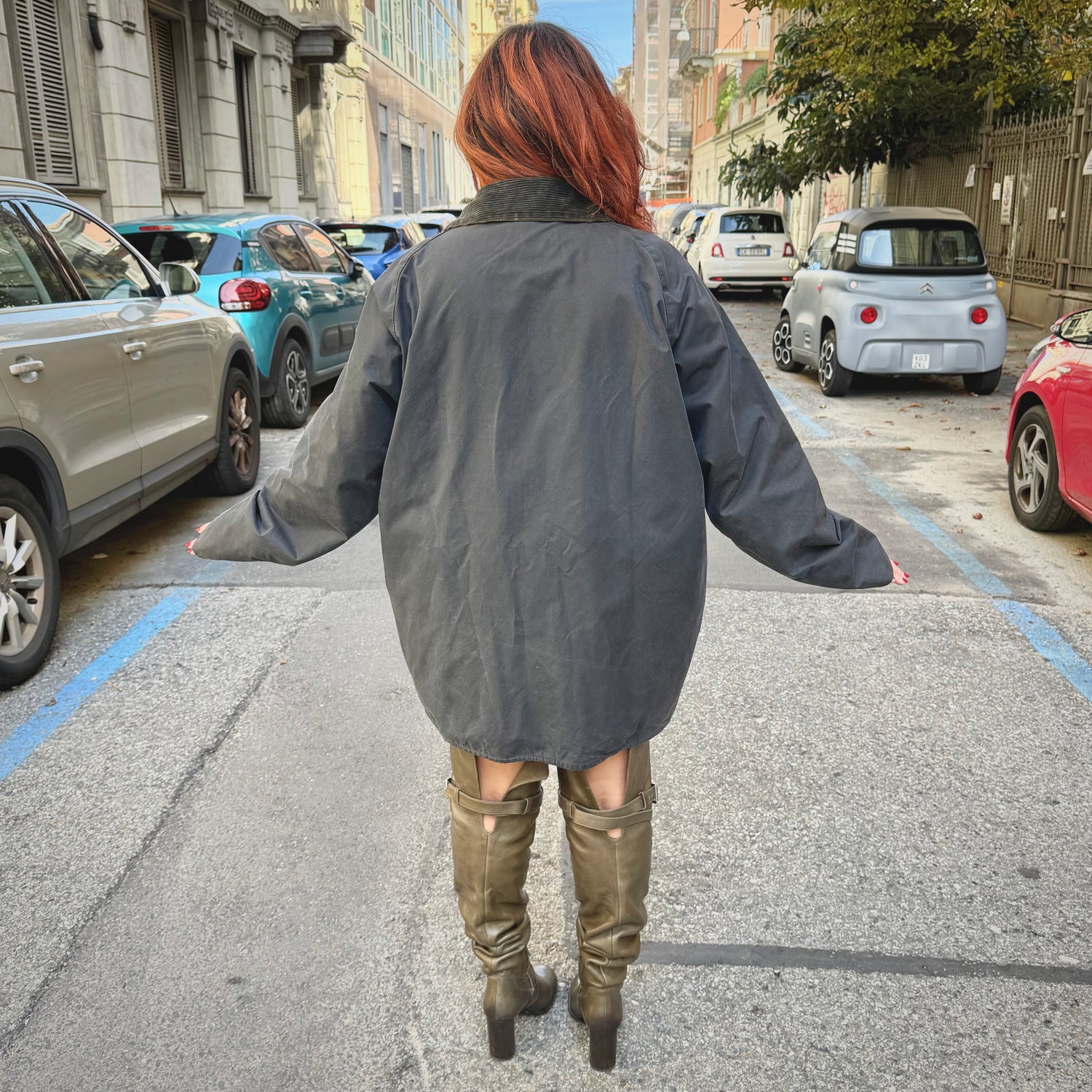 Barbour vintage modello Beaufort ovvero il modello da caccia. Colore blu , mantenuto in condizioni pressoché perfette nonostante i suoi anni. Appena cerato senza variazioni di colore,senza strappi, senza toppa alcuna. La fodera interna andrebbe rinfrescata ma non è necessario al momento. Tg C48/122cm , veste over dalla tg 46 in poi : tassativamente va portato over.