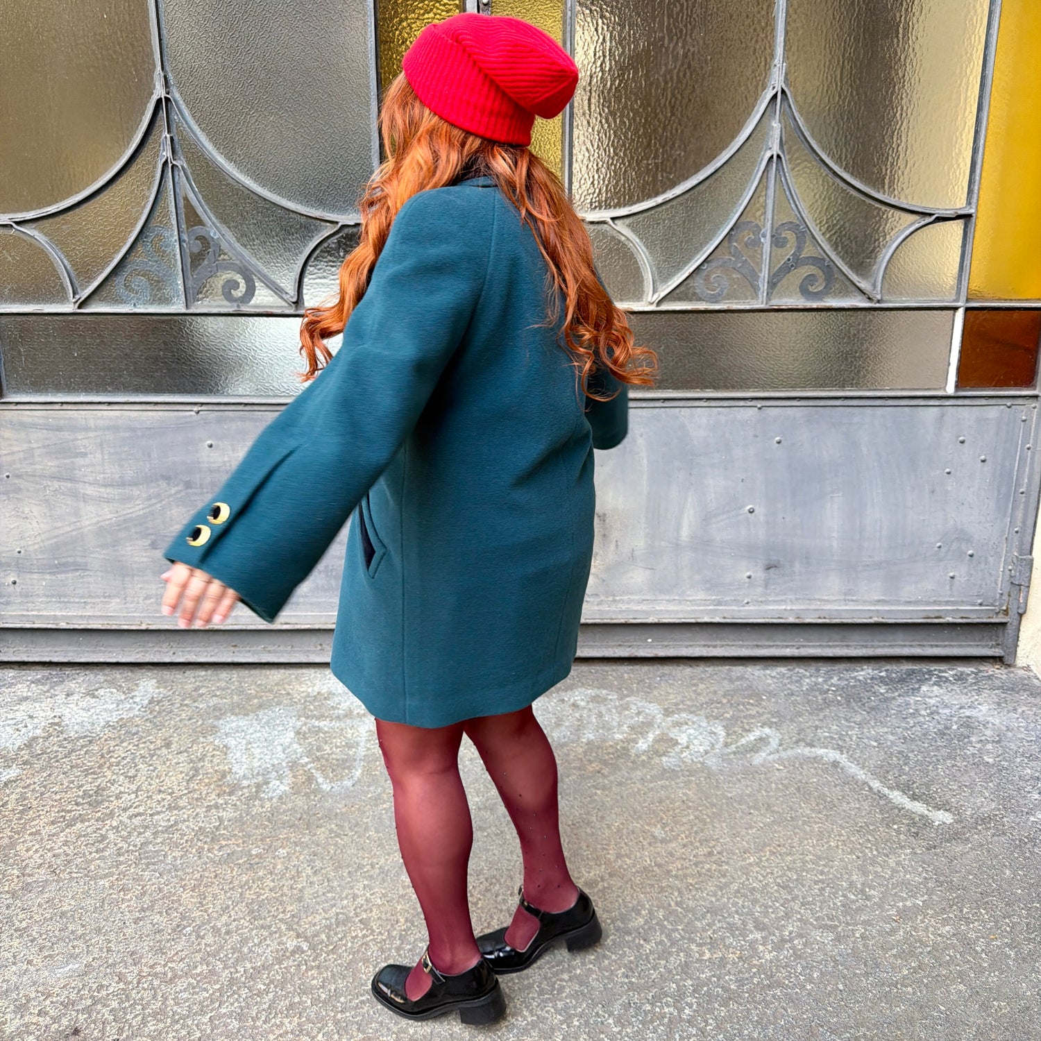 Stupendo capospalla in color verde petrolio perfetto per fine inverno inizio/primavera e autunno. Composizione calda e morbida difficile da reperire. Bottoni, colletto e tasche in velluto blu scuro elegantissimo. Manica raglan . Fodera interna. Veste over dalla tg 46 in poi.