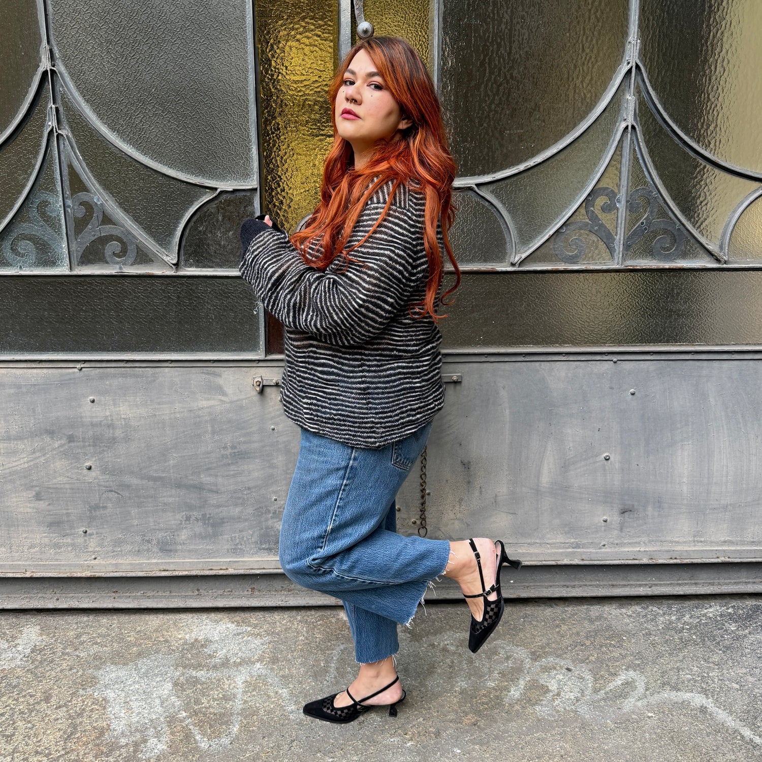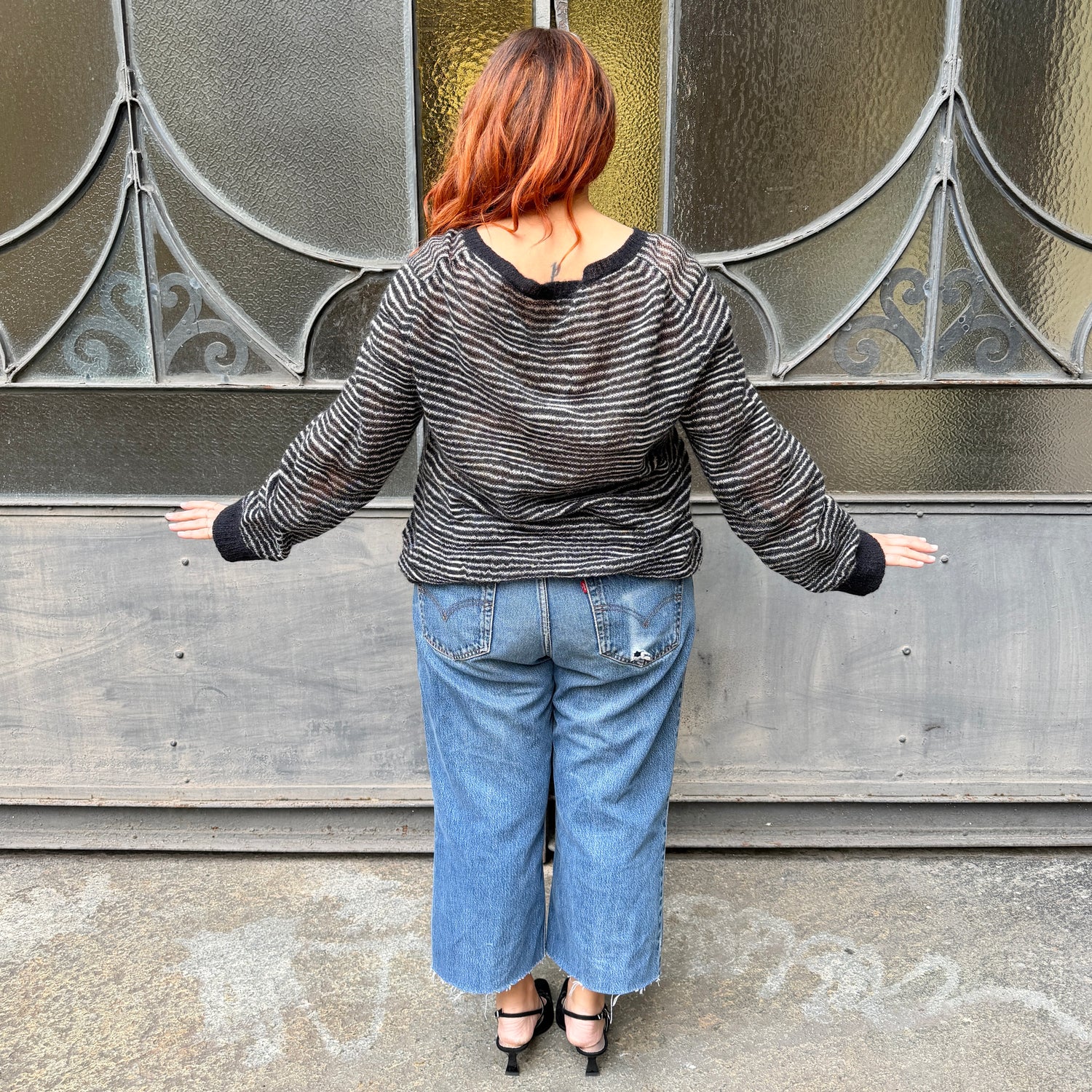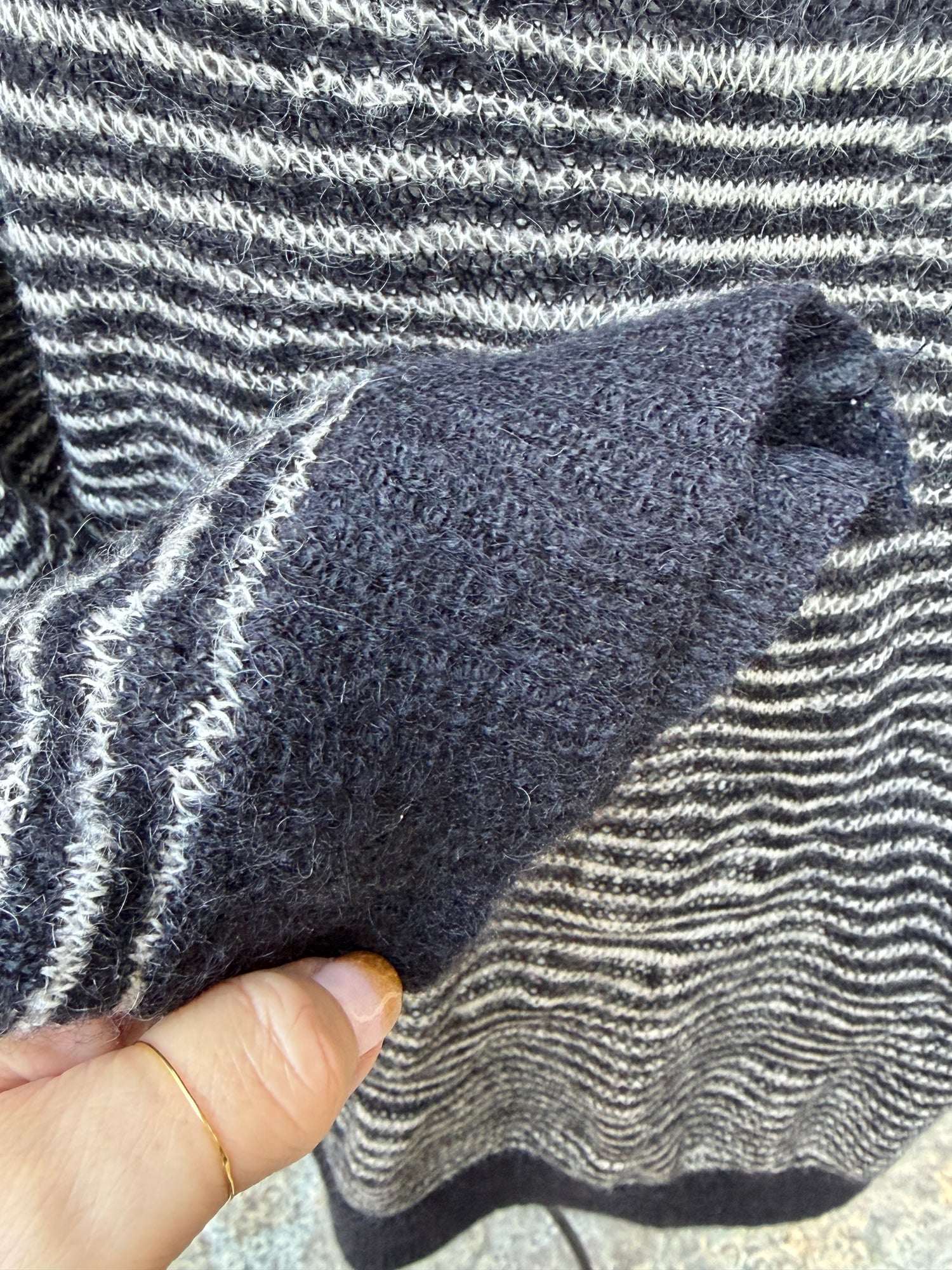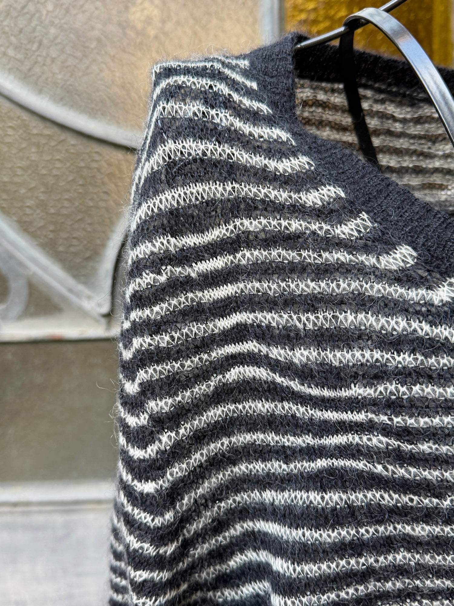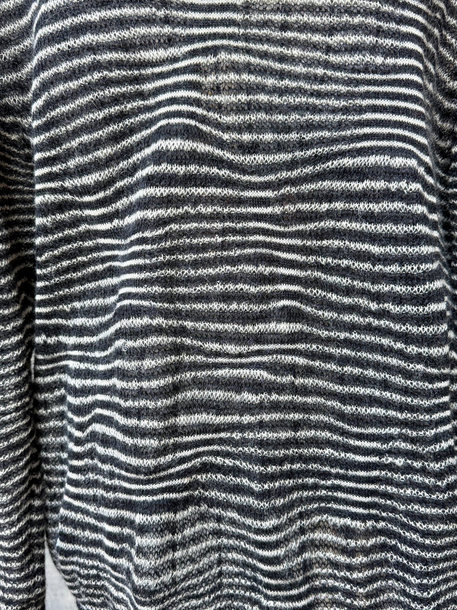 Incredibile maglione a righe Dior della collezione autunno inverno 2007 epoca del direttore creativo Hedi Slimane . La collezione si chiamava “Navigare” caratterizzata da elementi marinari. Lui è un maglione meraviglioso a righe non lineari ma che riprendono le onde del mare. Allego foto della sfilata con maglione indossato. Unisex . Veste over dalla tg 46 in poi.