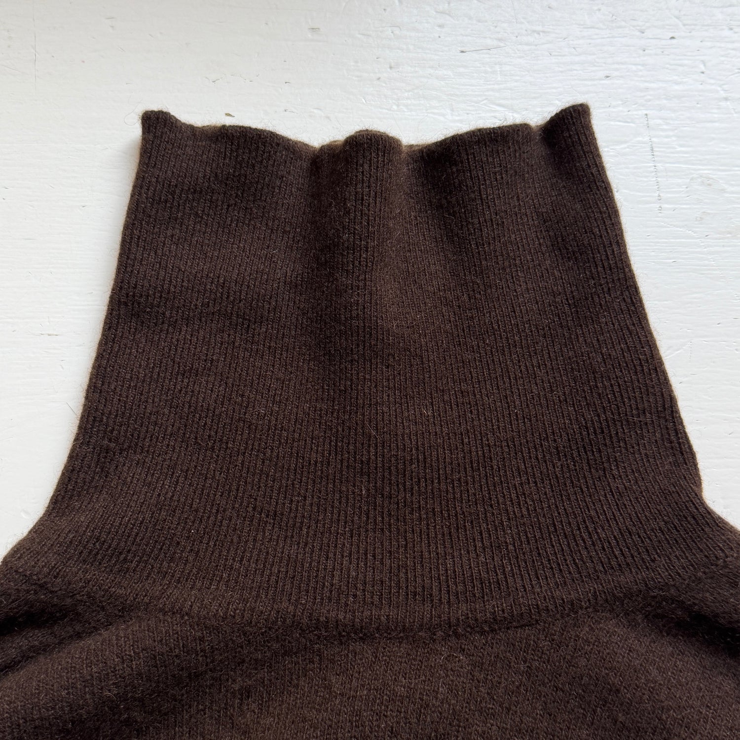 Una carezza rarissima questo dolcevita color cioccolato in cachemire scozzese. Unico davvero nel suo genere poiché tutte le produzioni made in UK sono rarissime.