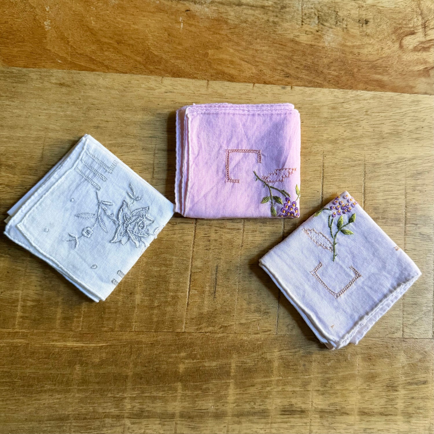 Una cosa di cui si parla quasi nulla é la sostenibilità nell’utilizzo dei fazzoletti di stoffa. Pratica che una forma era diffusissima a stento ora ci ricordiamo che esistano. Vi propongo quindi 9 fazzoletti in lino/cotone morbidissimi, ricambiati a mano che vengono degli anni ‘50/‘60. Sono stati divisi in 3 post X 3 fazzolettini : rosa e bianco.