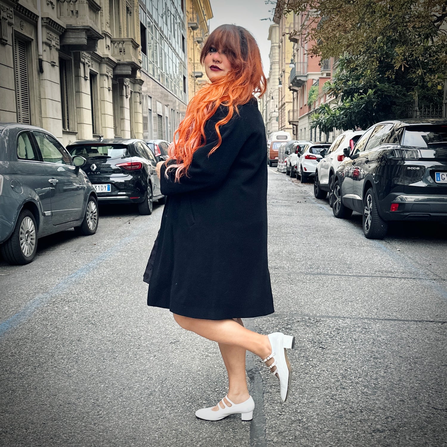 Cappottino nero del brand Fendissime (ovvero la linea Fendi sportiva degli anni 90) leggermente spallato ,elegante dalla linea pulitissima. Veste bene over dalla tg.44 in poi.