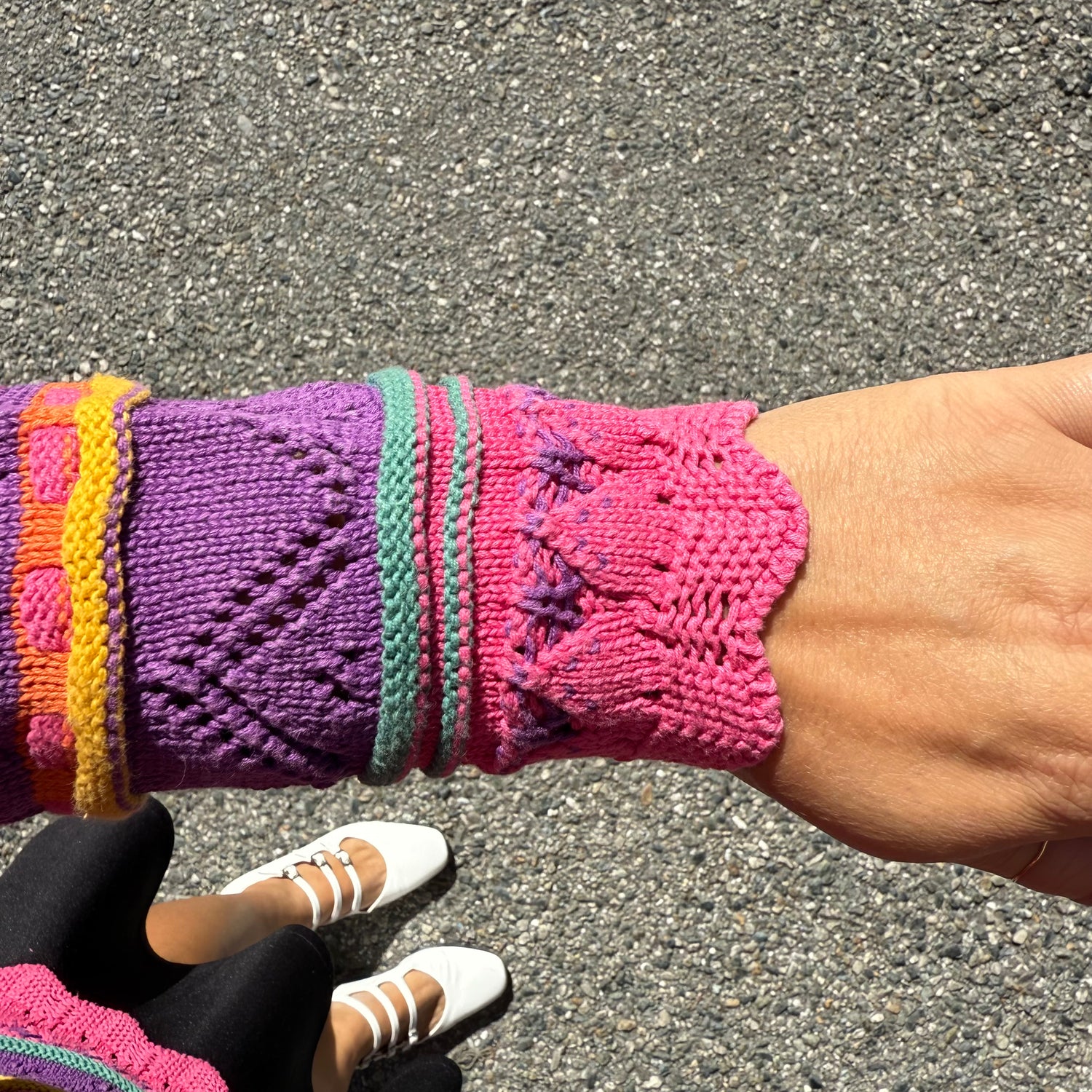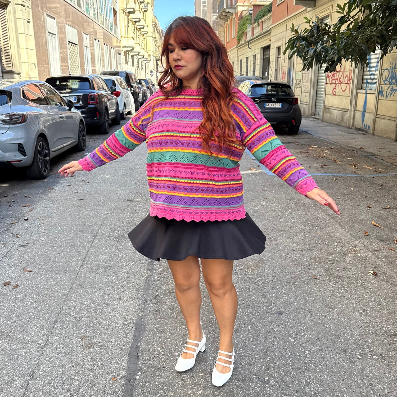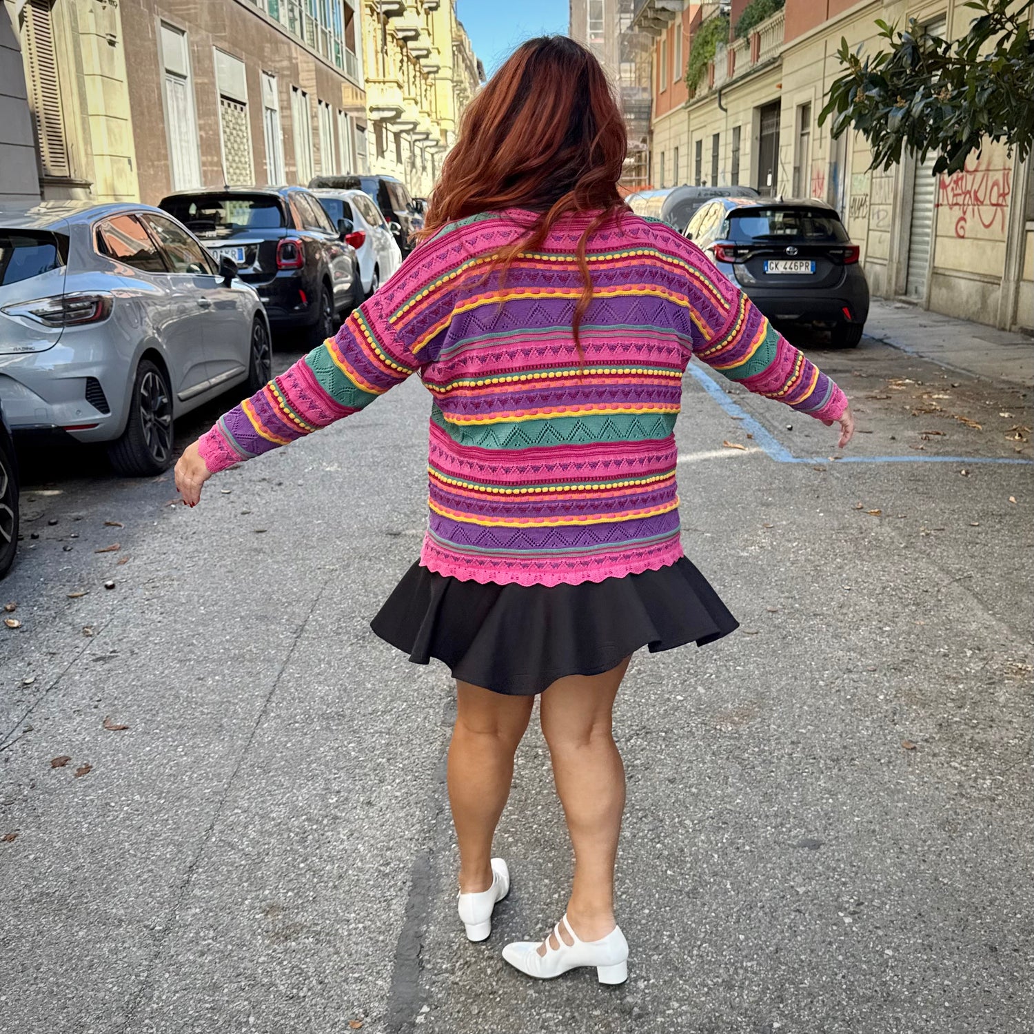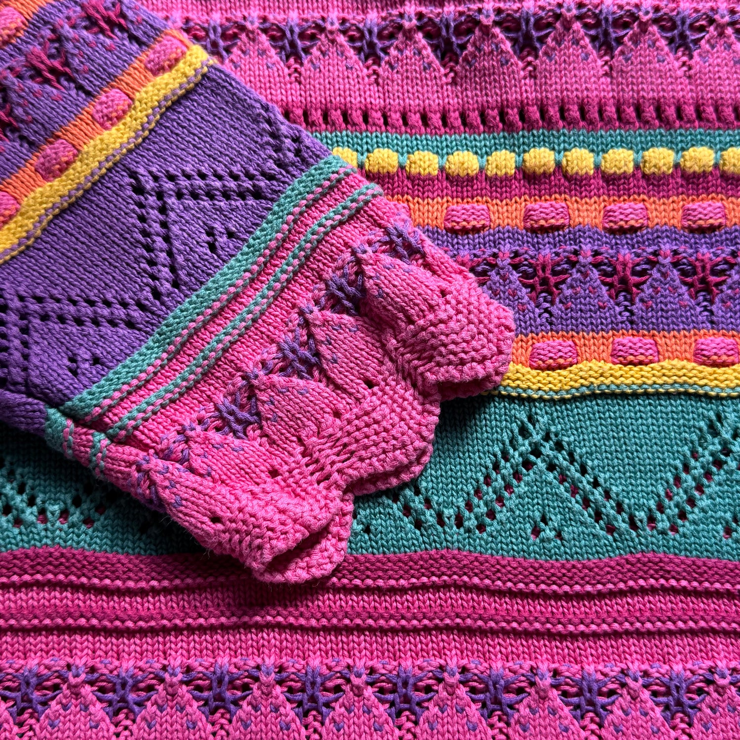 Meraviglioso maglione colorato di Fiorucci vintage con manifattura stupenda ed eclettica. Più ricami e più colori davvero bellissimo. Perfetto anche in primavera e estate.