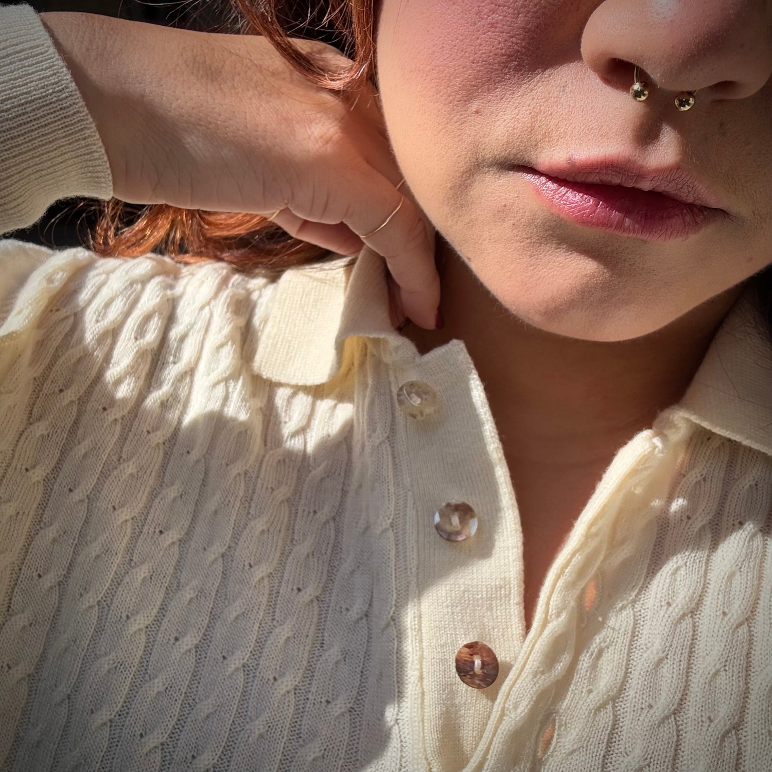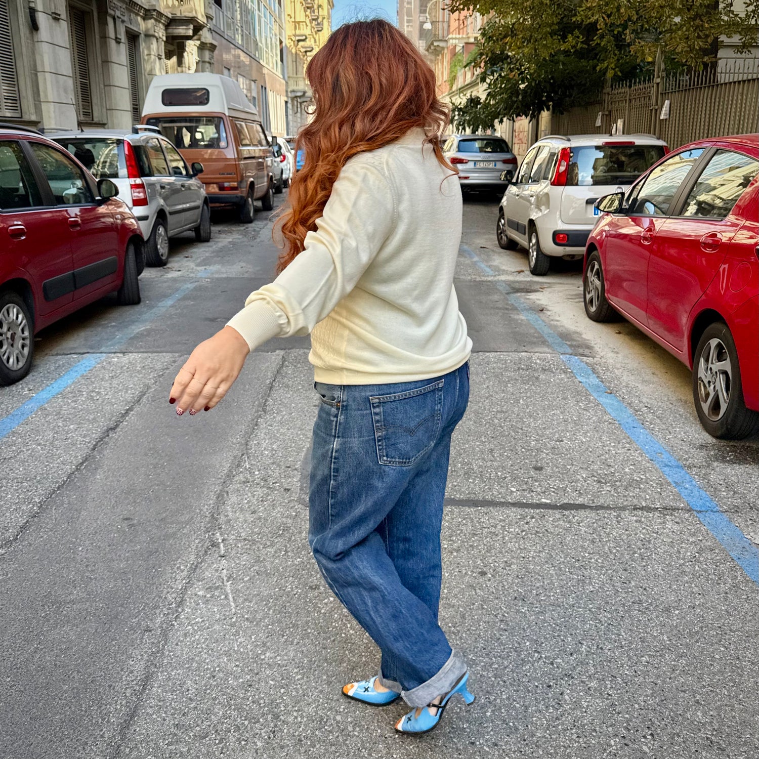 Stupenda e di grande tendenza la polo manica lunghe in tessuti caldi. Lei è color burro perfetta sopra e sotto ogni outfit. Morbidissima e nonostante sia in lana ha un filato extra fine così da non ingolfare e ingombrare. Stupenda portata over dalla tg 44 in poi o aderente.