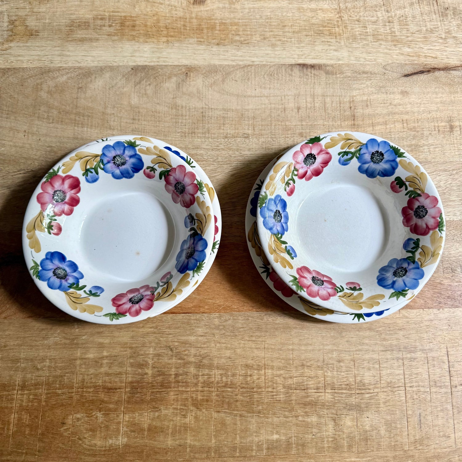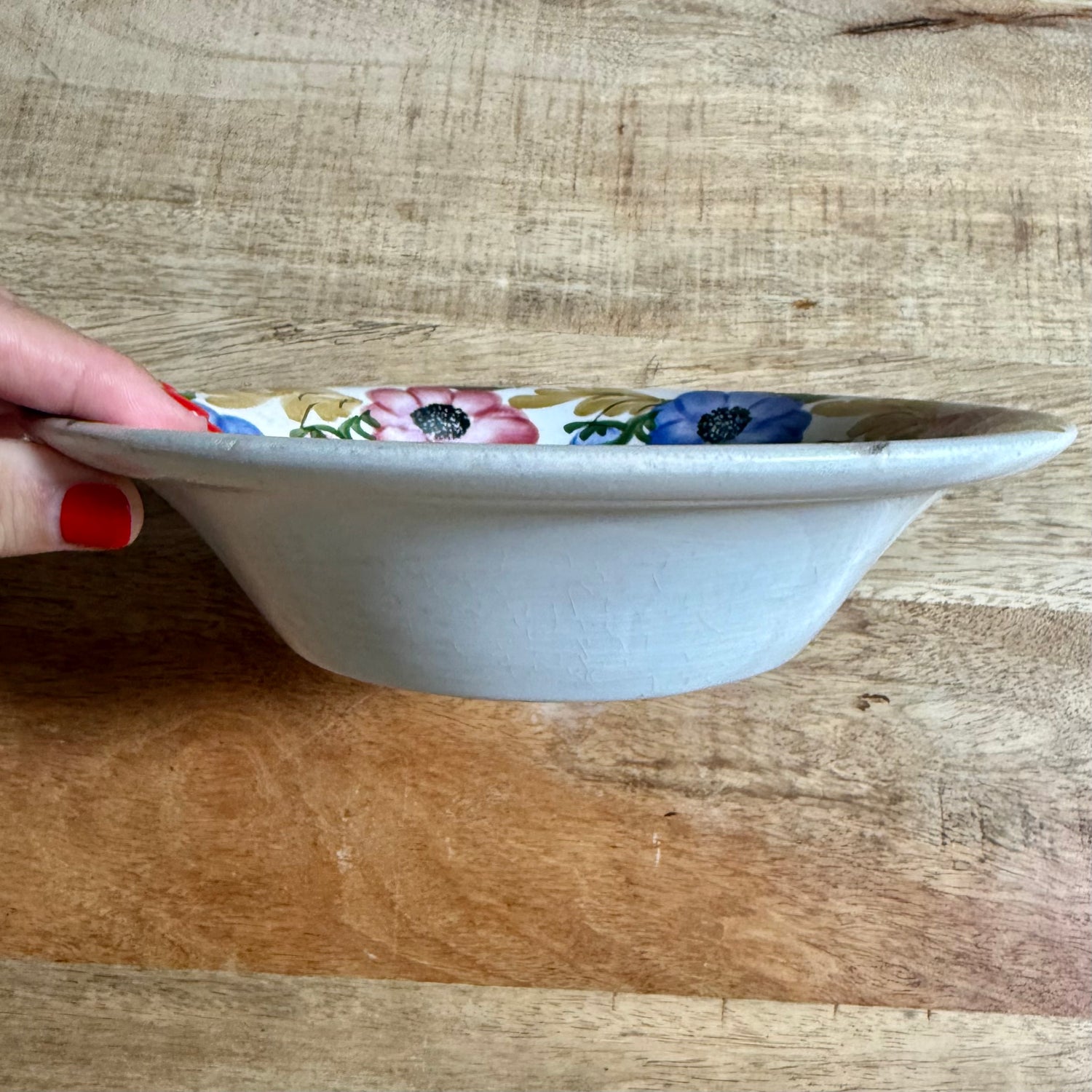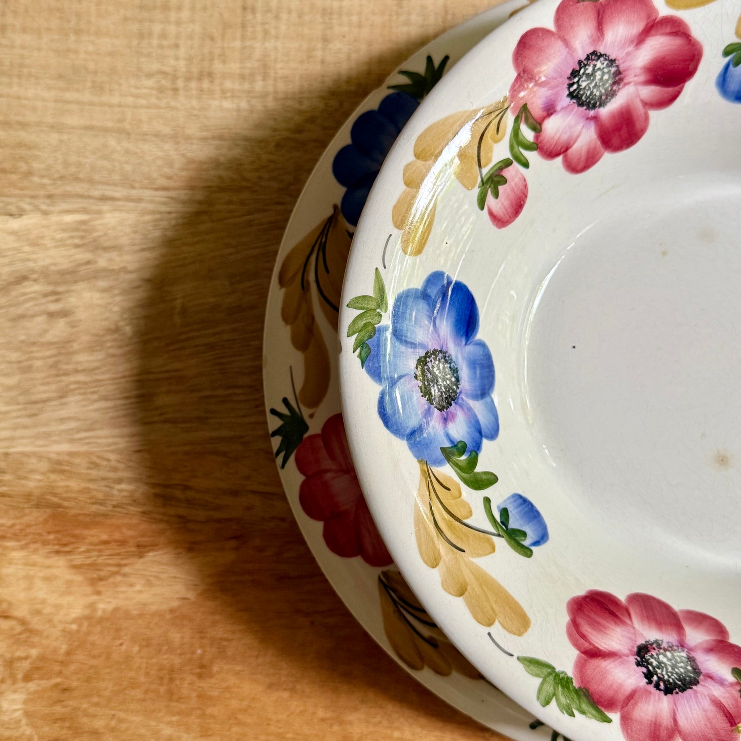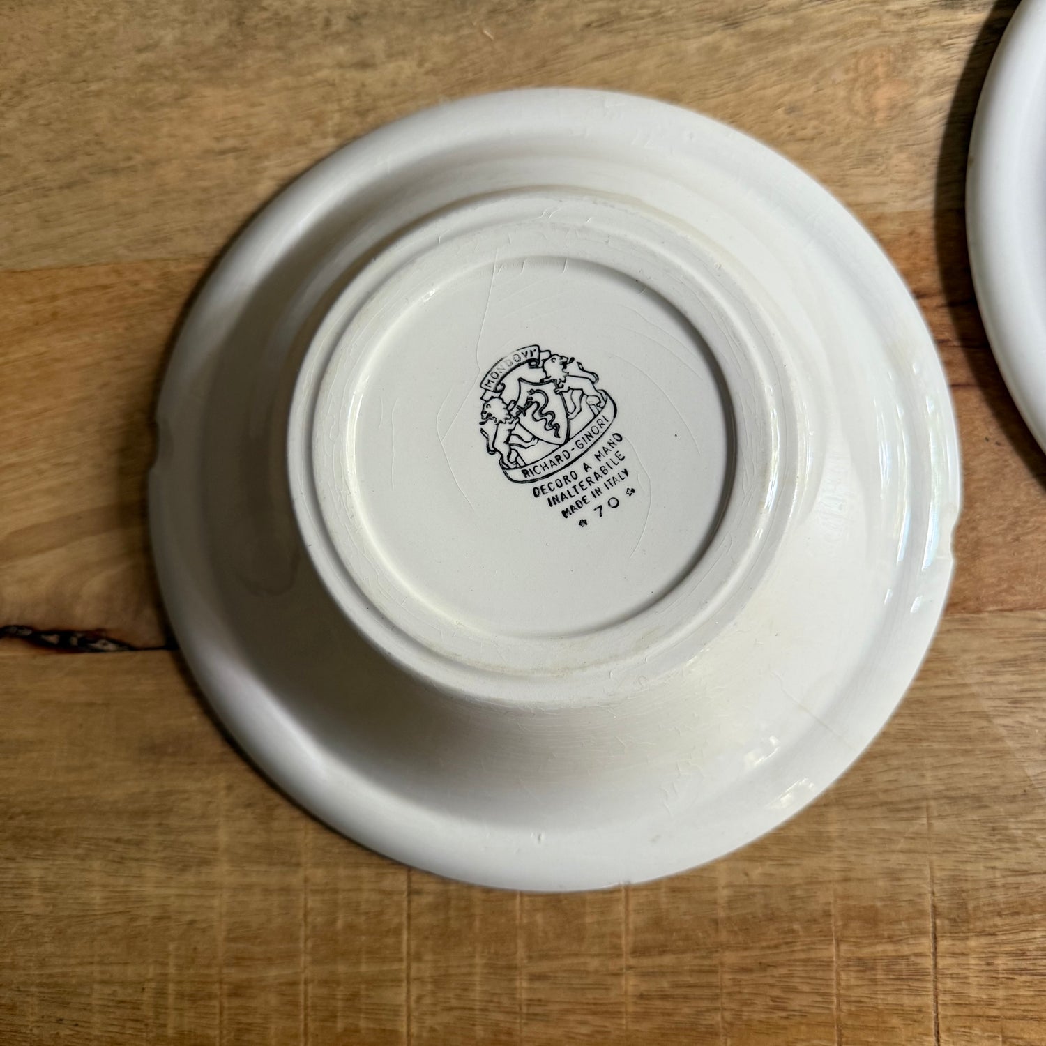 eccezionali piatti vintage di Richard Ginori. Due piani e due fondi . Base bianche con bordo elegantemente decorato con fiori. 💐 apparentemente primaverili o estivi ma per me sono perfetti proprio ora quando sentiamo ancora la mancanza delle ferie estive. Mangiante con loro sarà una vera emozione. Sono ad un prezzo davvero piccino rispetto alla qualità e alla ricercatezza perché sul retro si trovano delle sbeccature che però non compromettono la bellezza dei piatti.