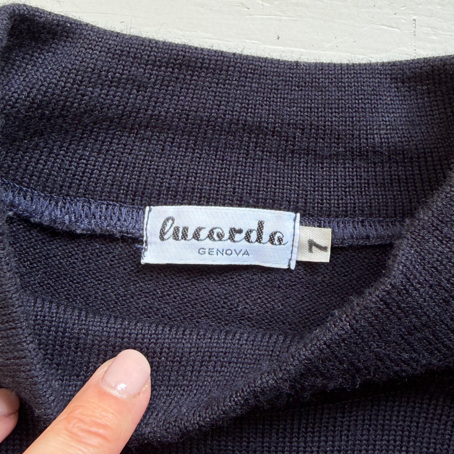 iconica pidocchiera di Lucarda. Si tratta di una lupetto 240 in lana color blu scuro che storicamente usavano i marinaia .