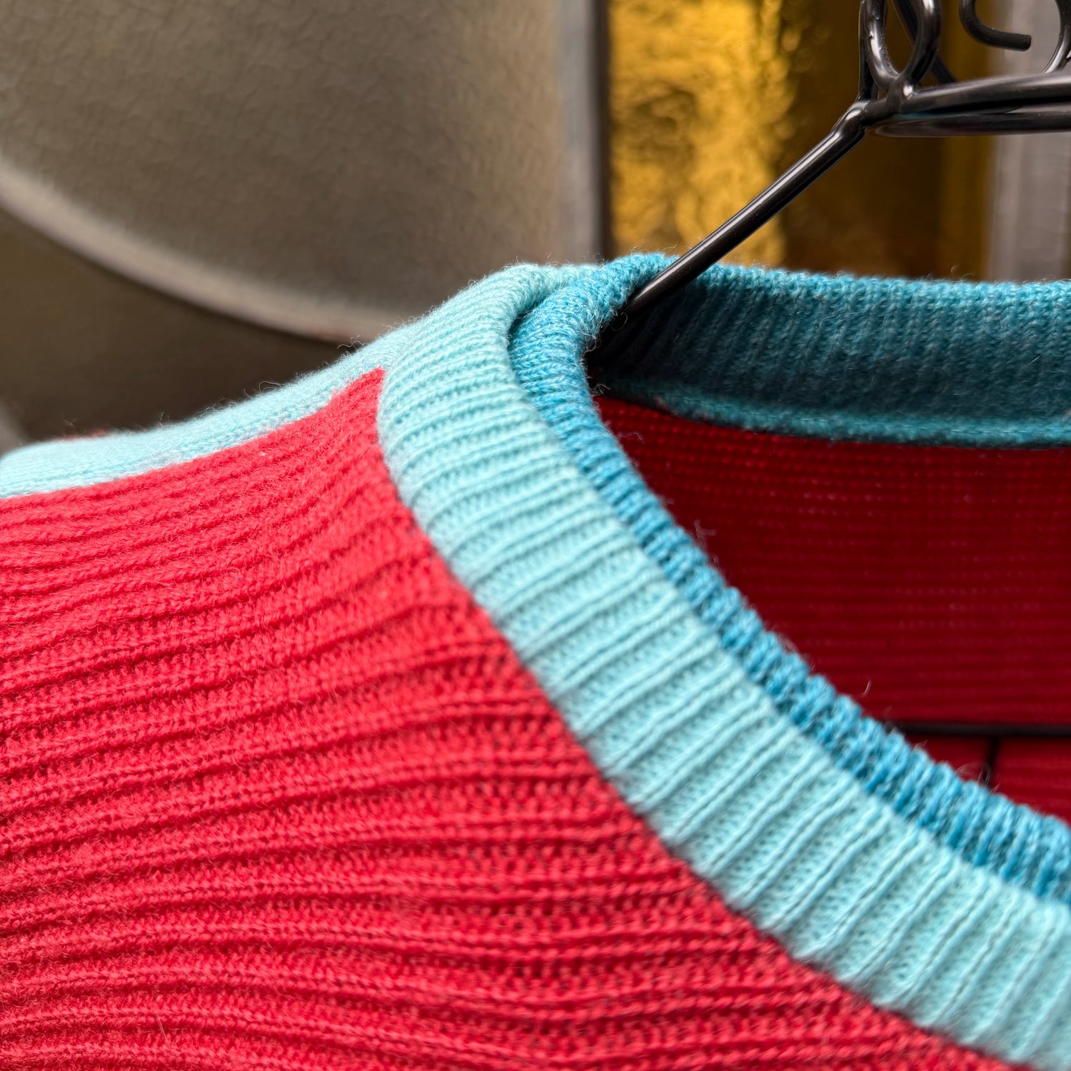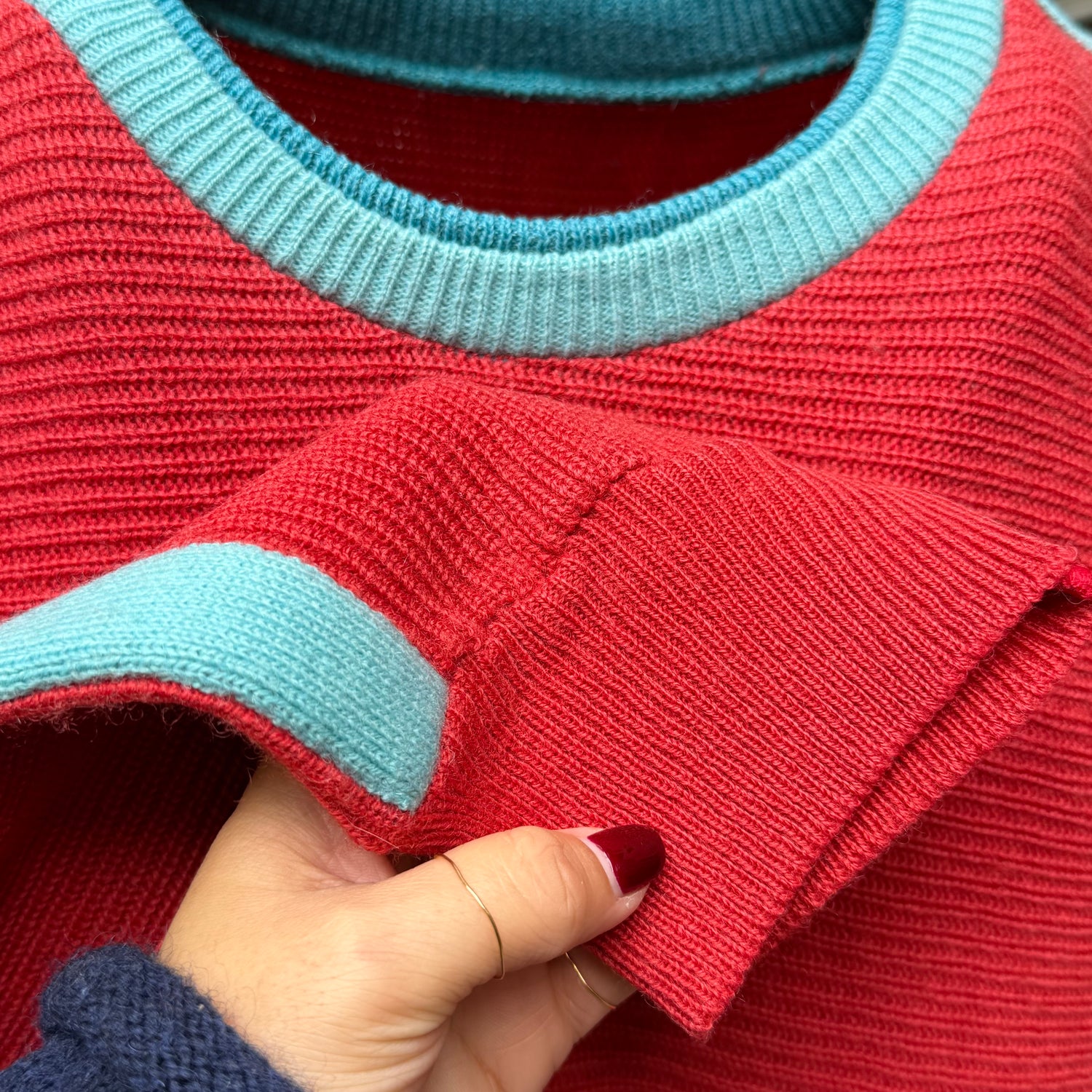 stupendo maglione vintage di Colmar in colore rosso con rifiniture azzurre e verde acqua. Ha una lavorazione stupenda e nasce come maglione principalmente da montagna o temperature molto fredde. Veste over dalla tg 46 in poi .