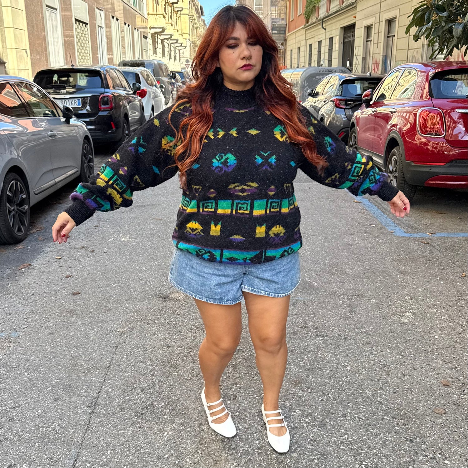 Incredibile cardigan vintage del brand “ United colore of Benetton” quando ancora produceva in Italia e creava non solo capi di qualità altissima ma una vera comunicazione di massa.