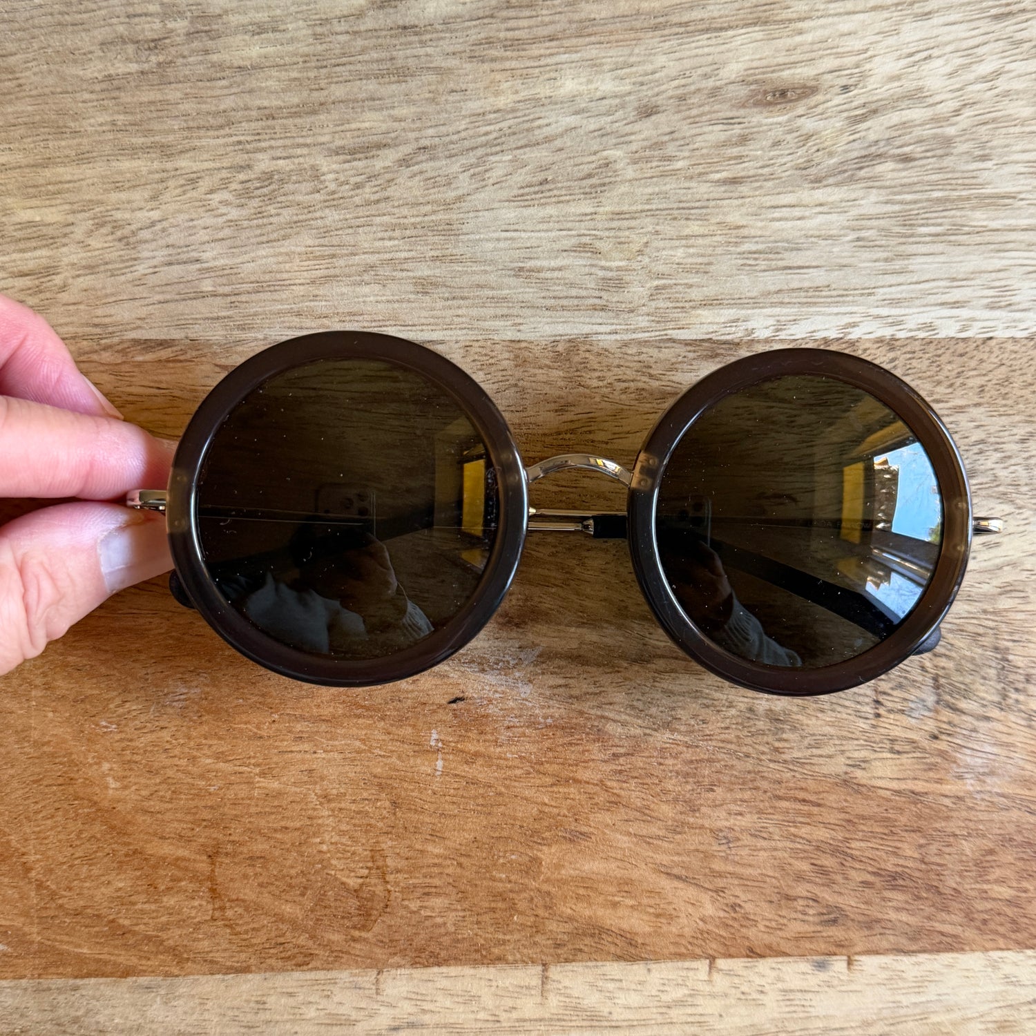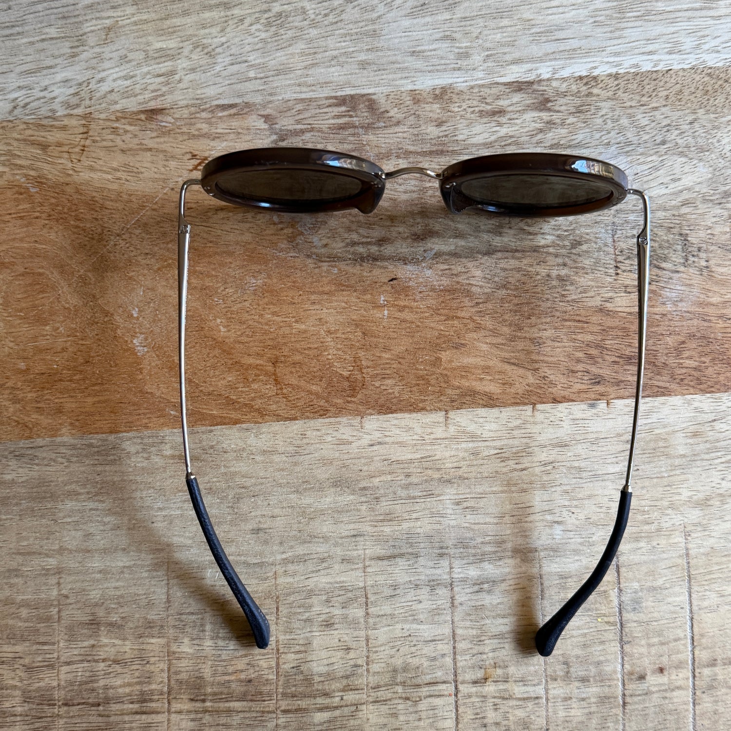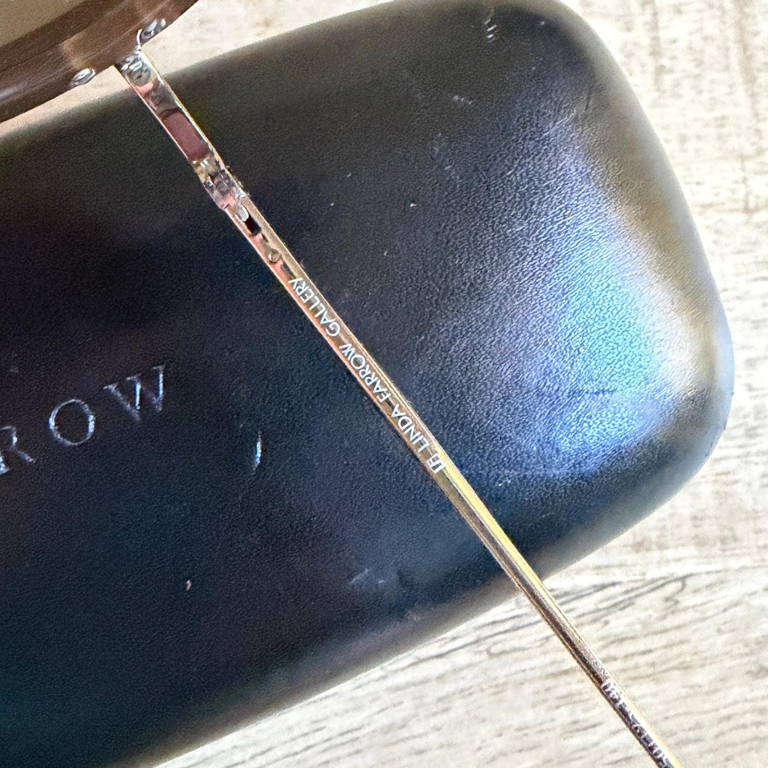 Iconici occhiali e rarissimi di The Row in collab con Linda Farrow. Colore marrone usati ma tenuti perfettamente. Asticelle in pelle. Scatola presente ma un po’ usurata.