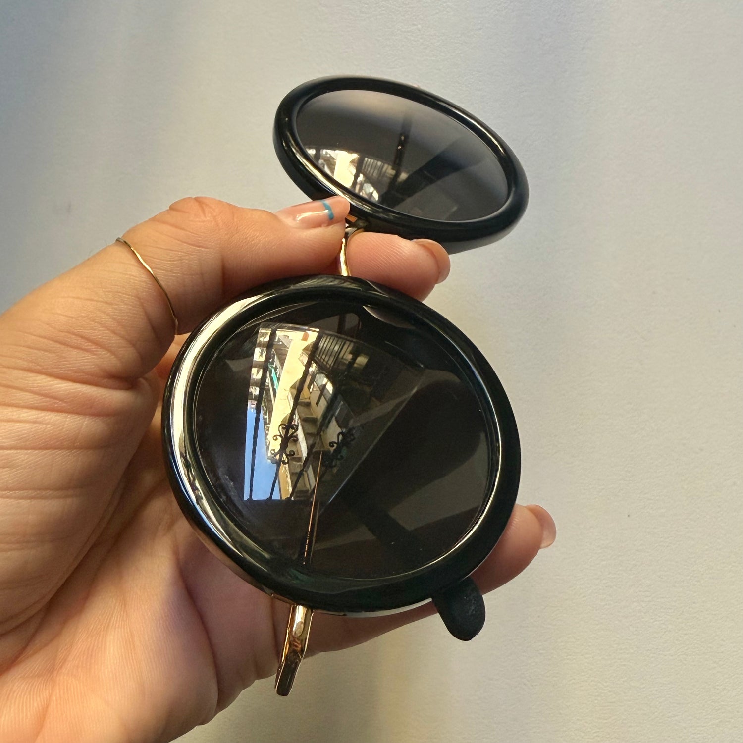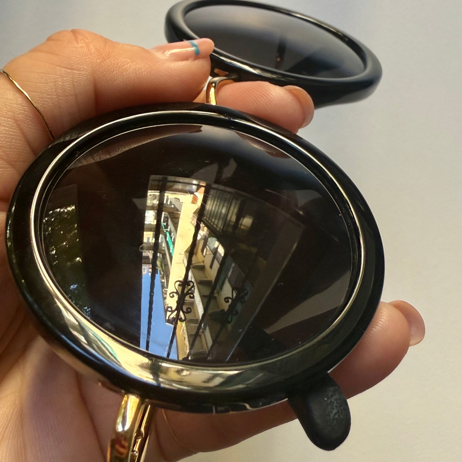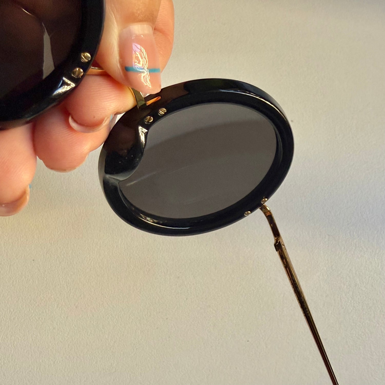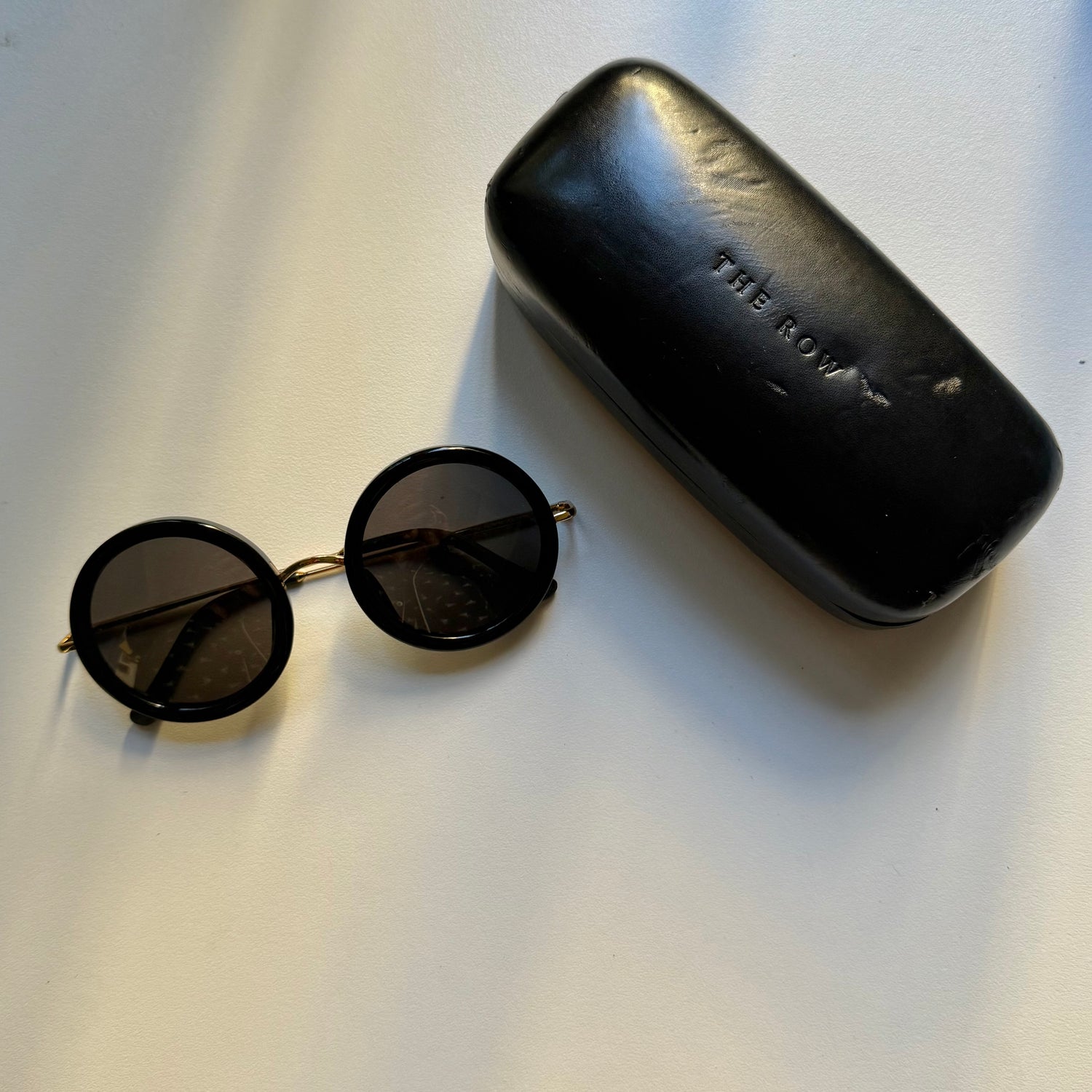 The Row occhiali da sole neri creati da Linda Farrow. Sono uno spettacolo e rimangono iconici per il brand e gli appassionati che ancora li ricercano tantissimo.