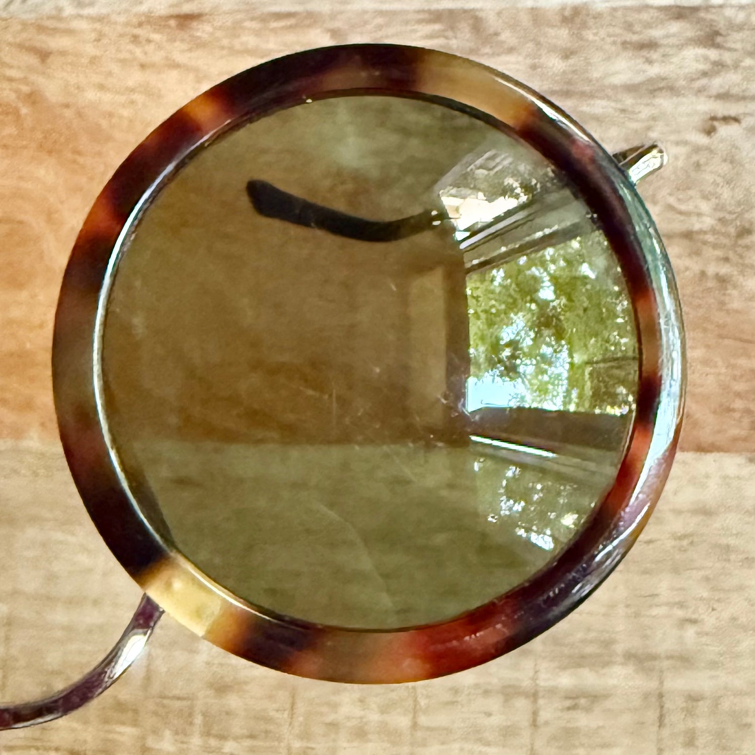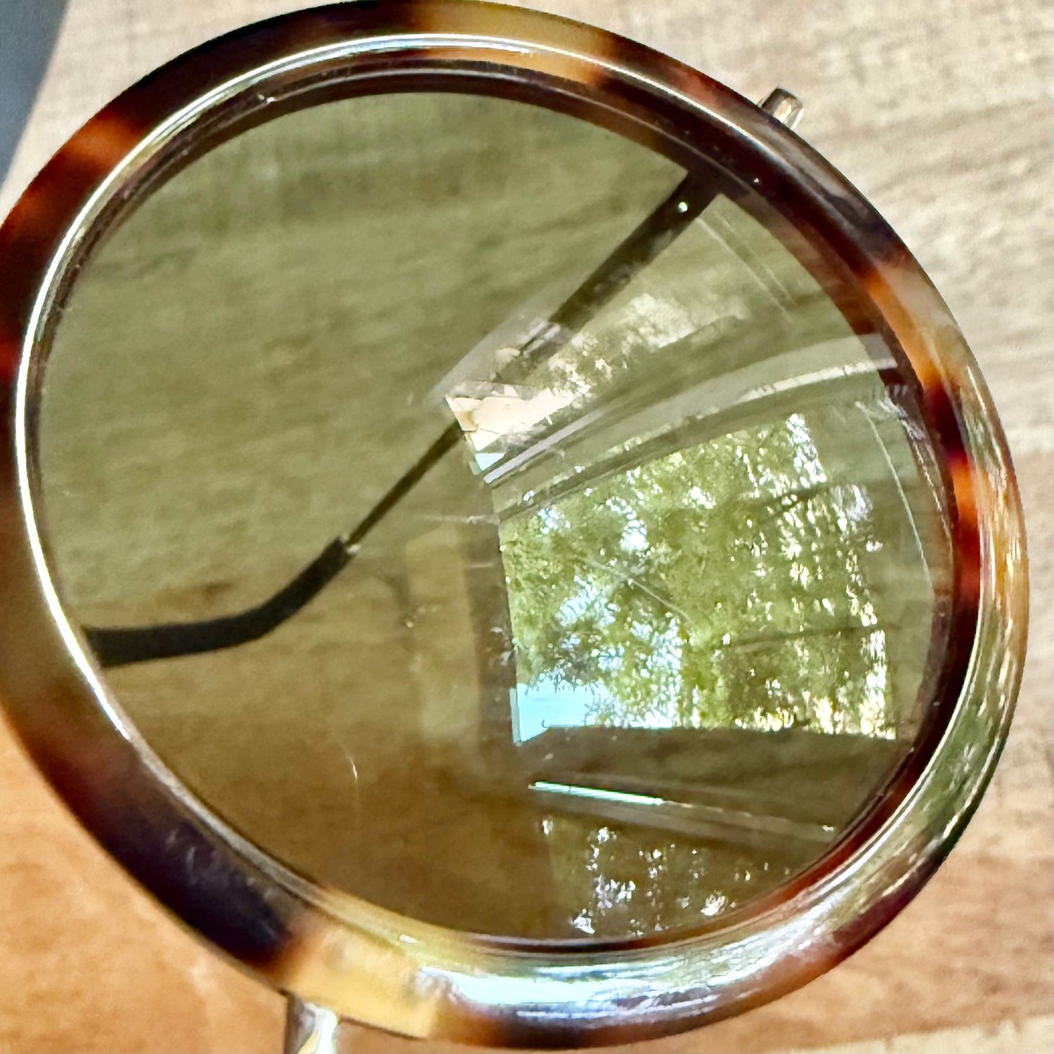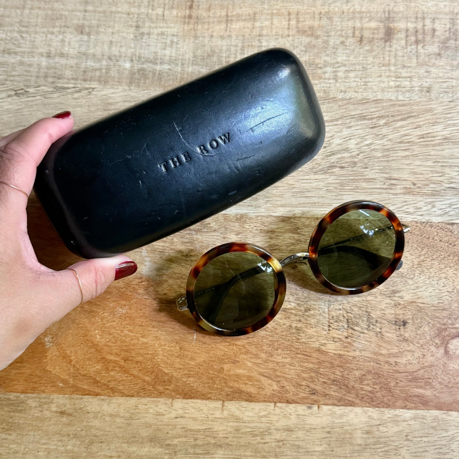 Iconici occhiali da sole The Row in collaborazione con Linda Farrow . Versione montatura tartarugata ( la più ricercata) e lenti verde scuro. Sono meravigliosi senza dubbio. Purtroppo la lente desta ha delle righette che ho cercato di fotografare ma è difficile, da qui il prezzo ridicolo per questo accessorio.
