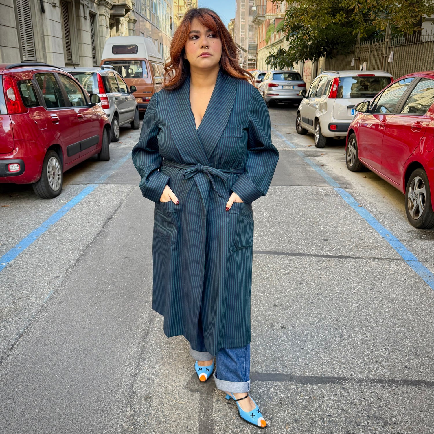 Se non avete mai sentito l necessità di avere una vestaglia da camera: male! 😂 una volta tutti ne utilizzavano una appena scesi da letto m. Questa è ha righe sottili blu e verdi , tasche laterali e cintura.